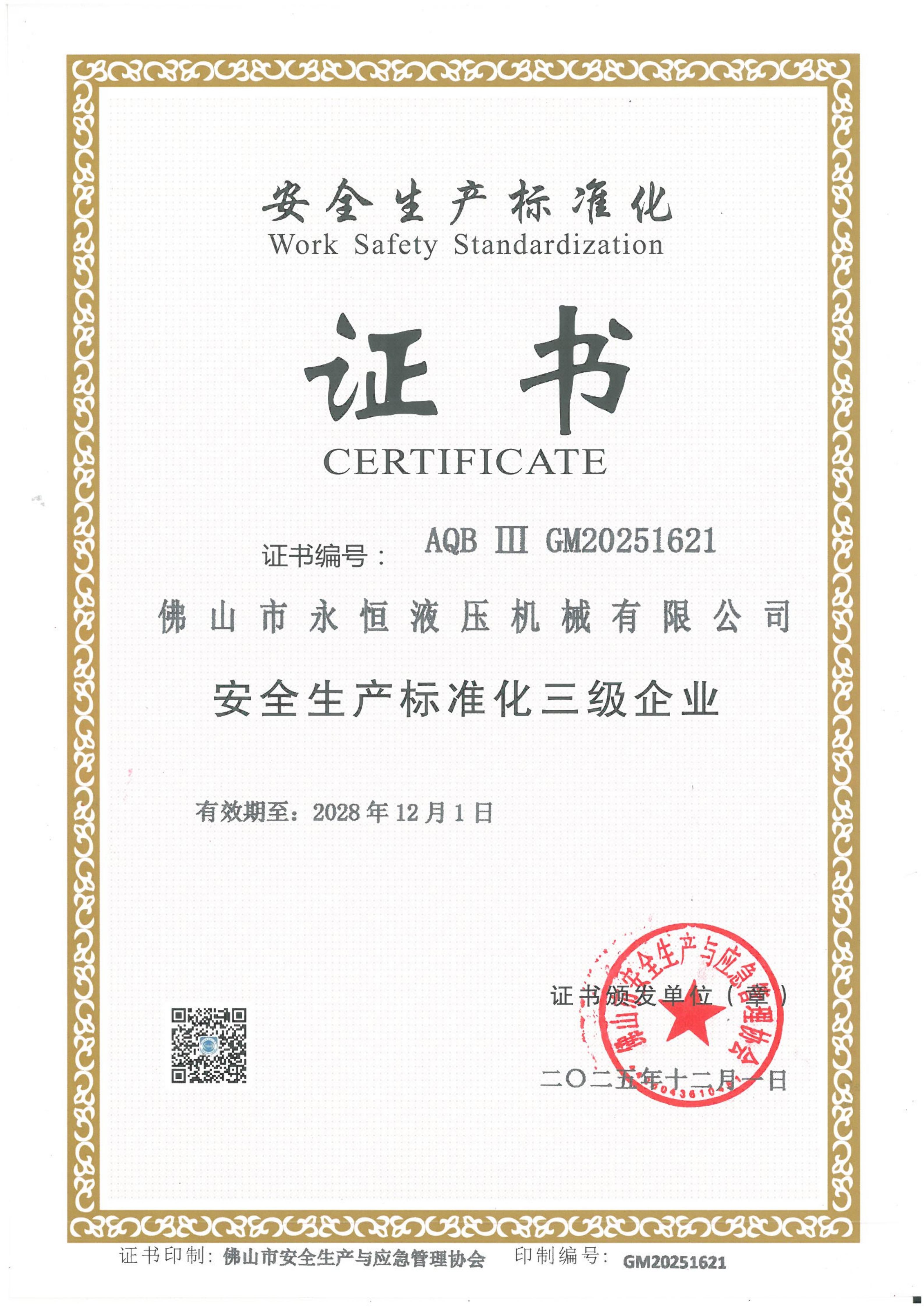 安全生產(chǎn)標(biāo)準(zhǔn)化三級企業(yè)